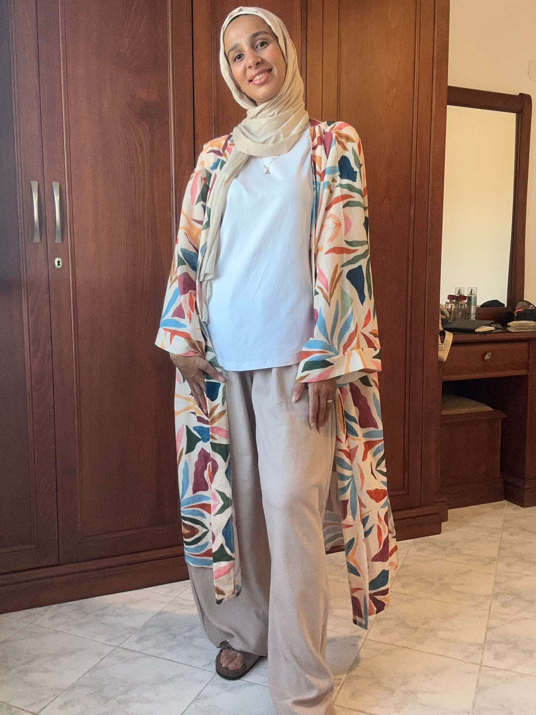Arabsic printed linen kimono