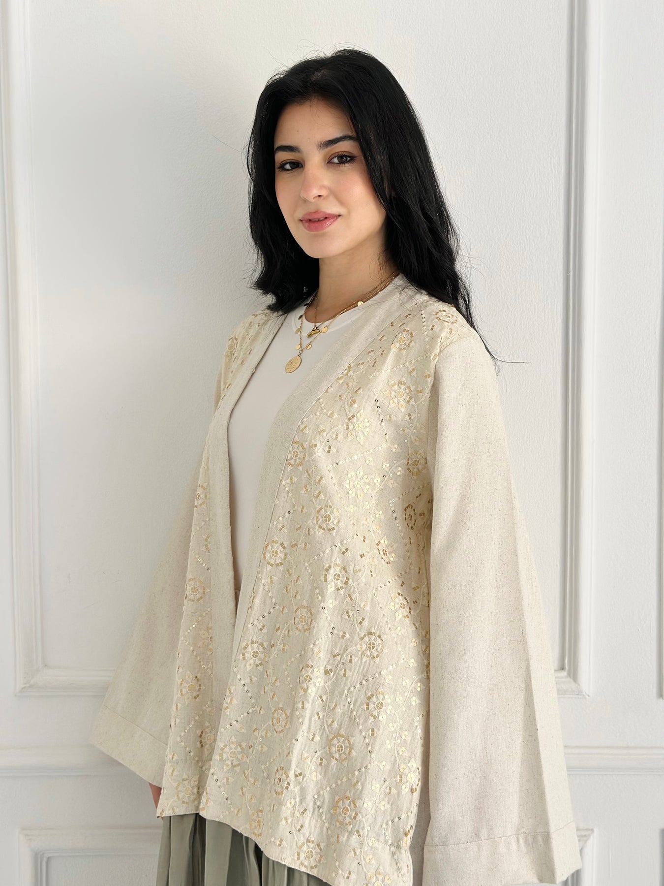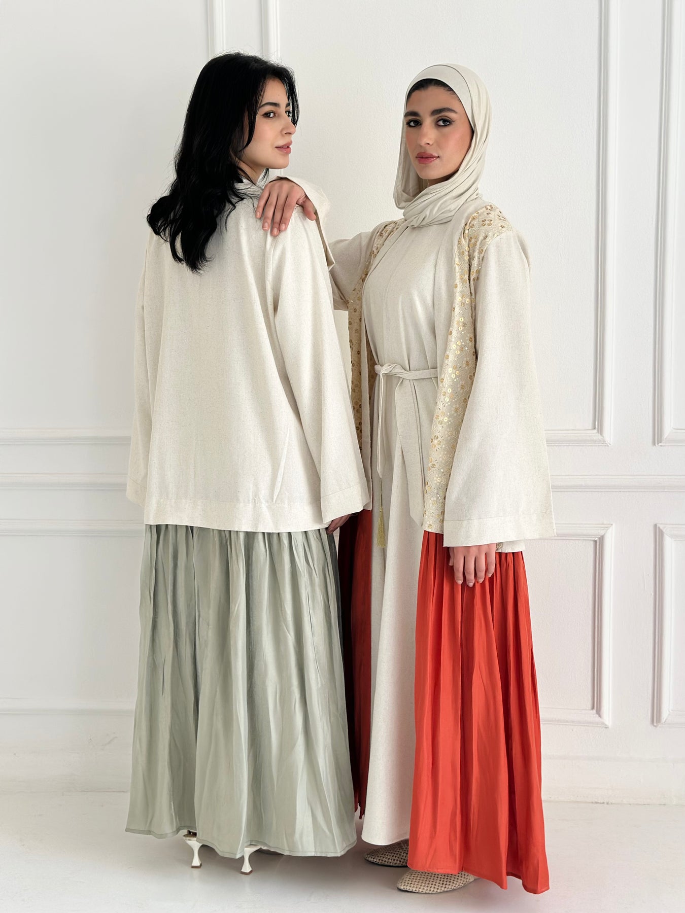 • Embroidery:  Gold embroidery pure Indian linen vs orange shimmer oragnza .