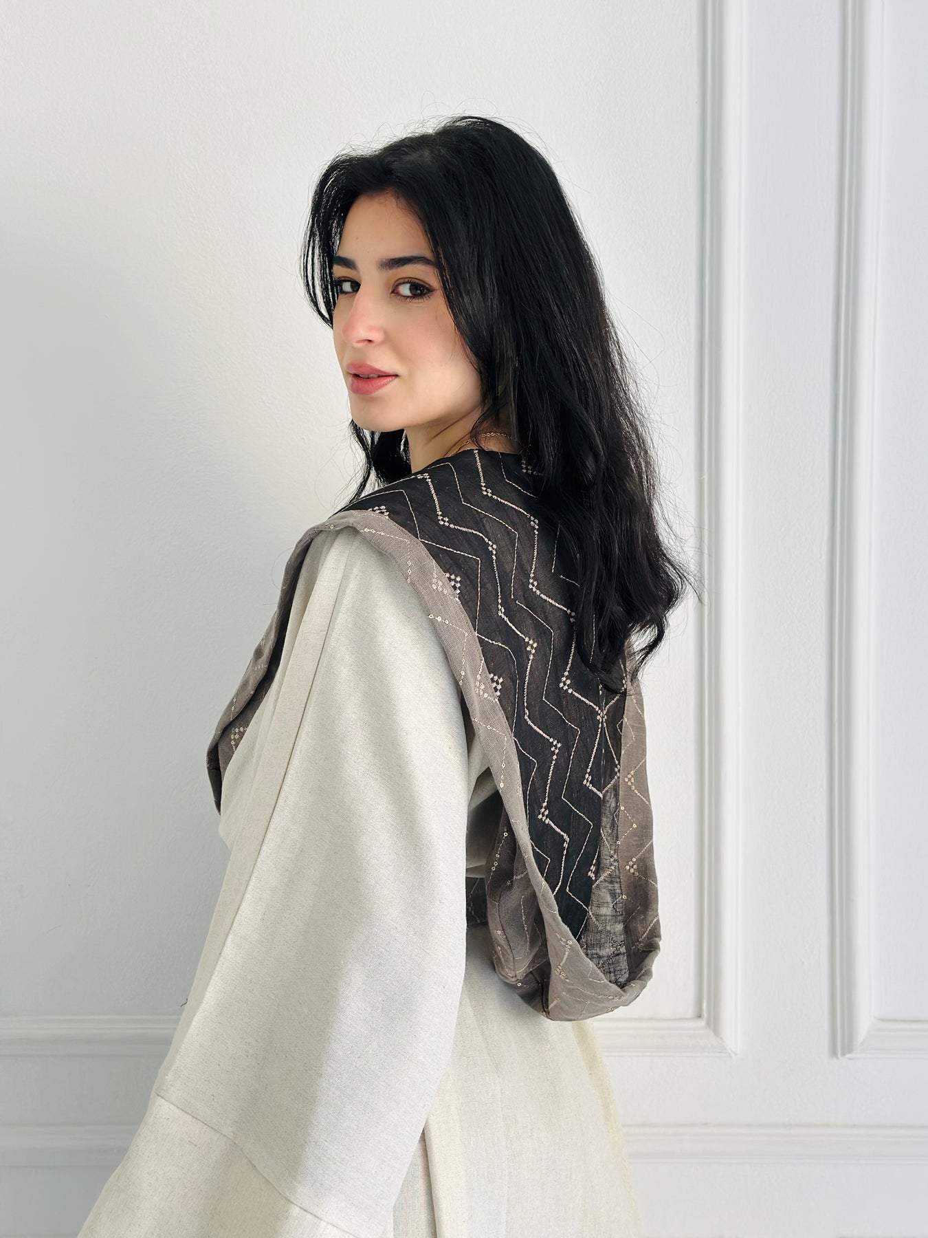 • Embroidery: Black vs Gold embroidery pure Indian linen  .