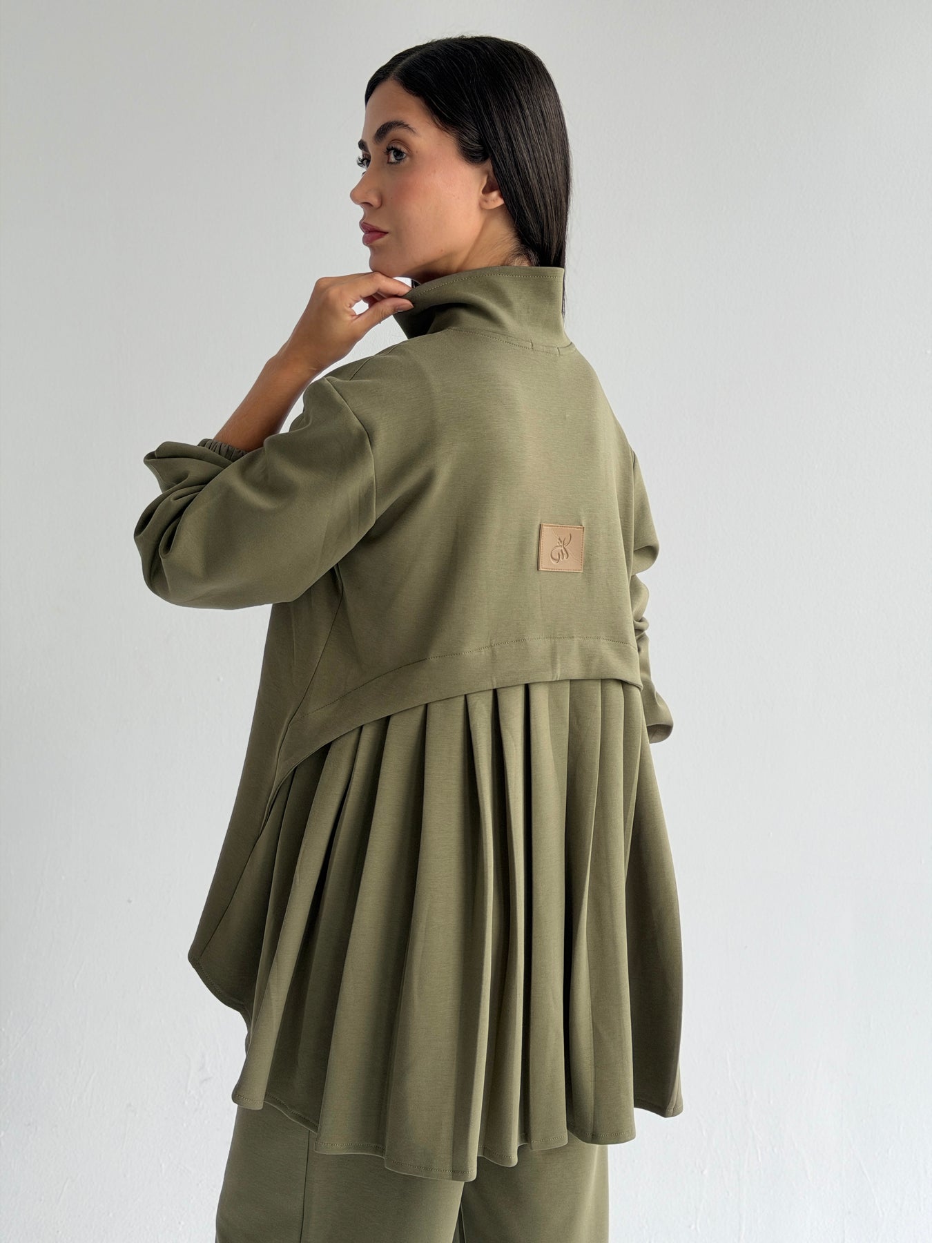 Pleated back set - olive