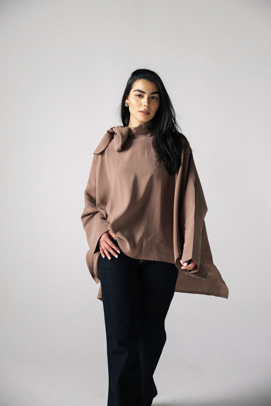 Scarf poncho top - Cafe