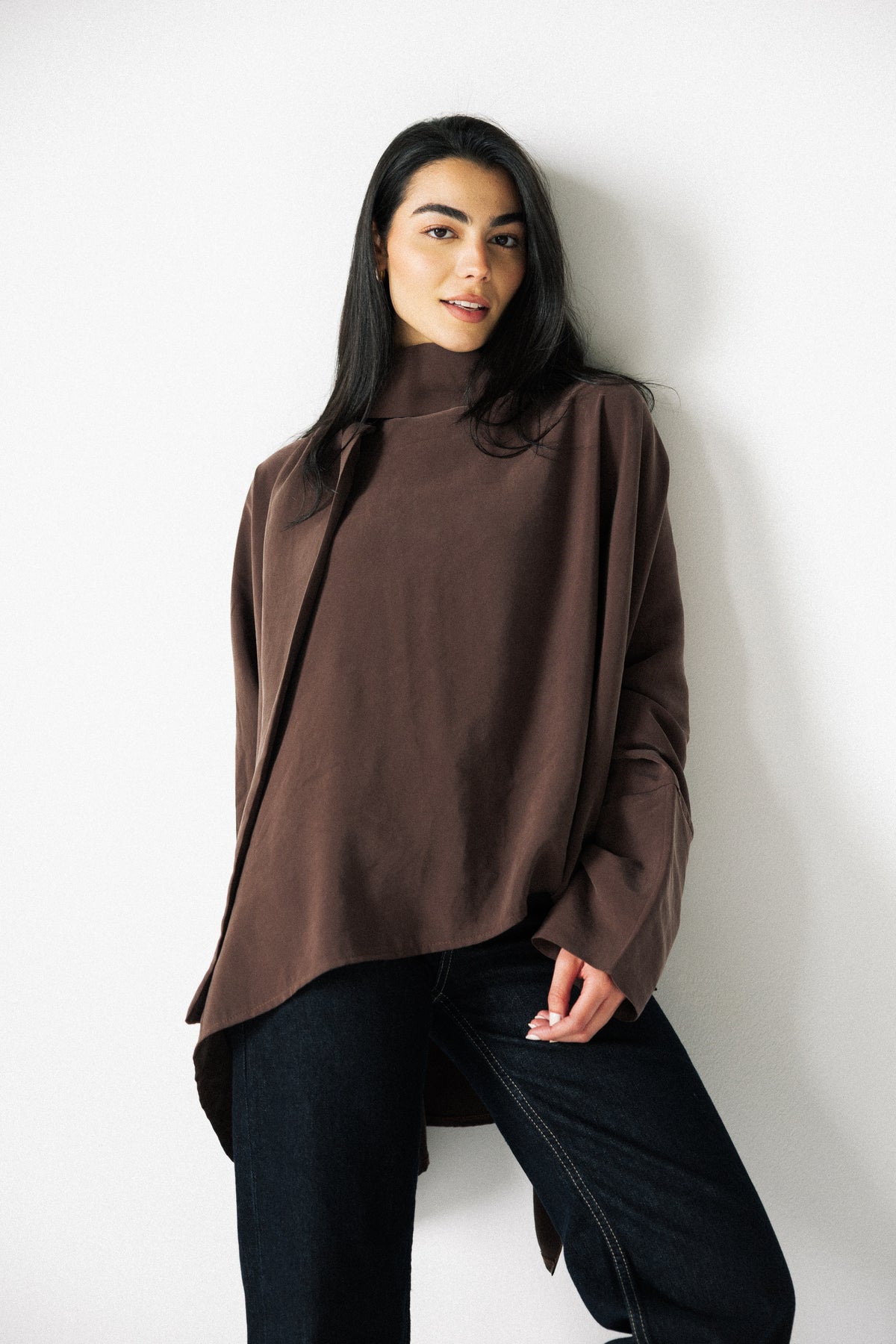Scarf poncho top - Dark brown