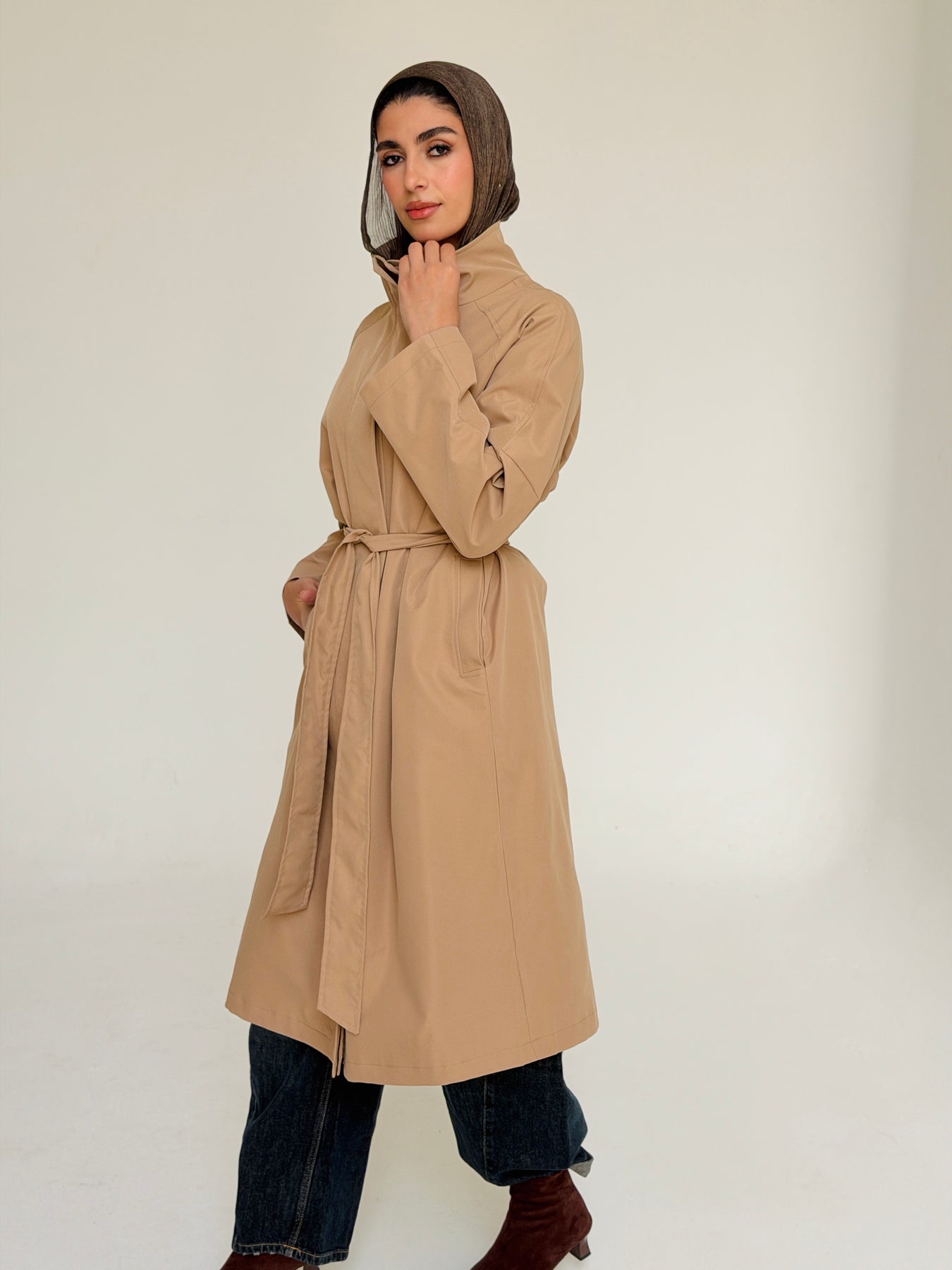Gabardine long trench coat- beige